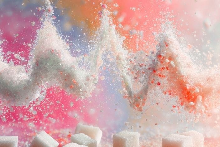 Why do glucose spikes and dips matter? Repeated spikes and dips in glucose can make the body need more insulin, cause visceral fat to build up, and tell the liver to make more triglycerides.